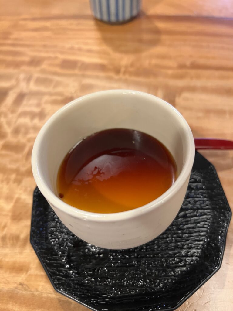 平日ランチのデザートはプリン?と思いきや豆乳のゼリーで、苦めのカラメルが満腹にも美味しくて、大満足のお蕎麦ランチとなりました。ごちそうさまでした。