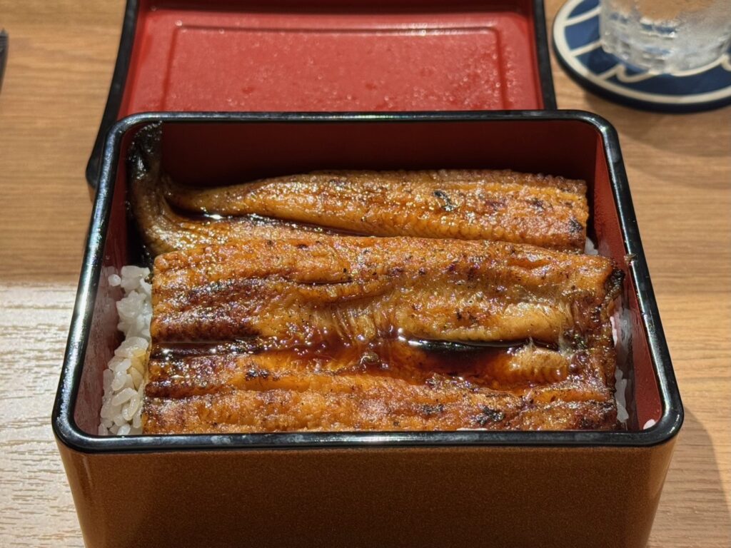 日本酒を過ごすとヘロヘロになるので、しんに少し注いでもらった写楽をちょっとずつ舐めていたのが奏功してたっぷりの鰻も何とか完食しました。いつもの調子でワインをがぶがぶ飲んでいたら無理なボリュームでした(^_^;)。事前のお料理の予約で鰻重御膳はひとり4400円にしていただき、お会計は10100円なり。カードで支払いました。ごちそうさまでした。